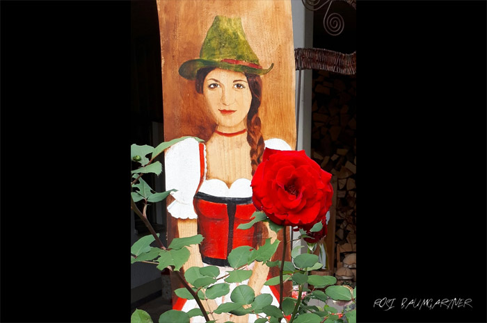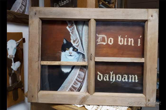 Die Künstlerin Rosi Baumgartner ist auf einem Bauernhof aufgewachsen und nennt daher ihre Kunst gerne "Bauernhofmalerei".